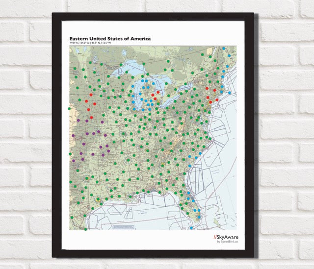 Stand further back and See real-time aviation METAR weather flight category information on our 30" x 24" poster-sized maps!